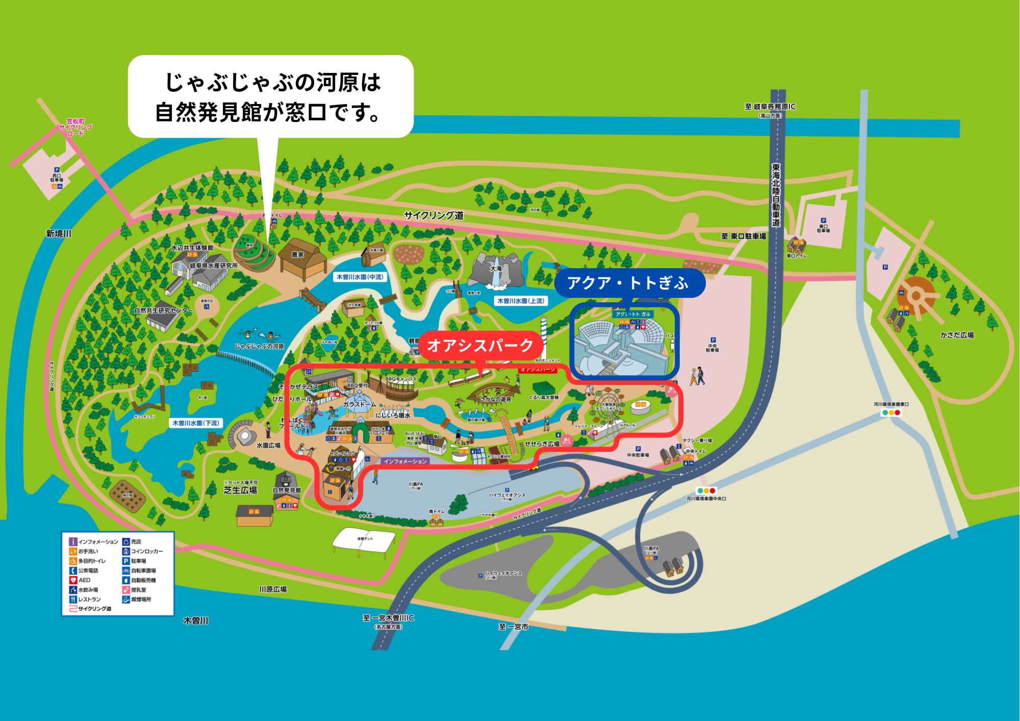 オアシスパークとは別のエリアですが、同じ河川環境楽園内に位置しており、それぞれの特色を楽しみながら訪れていただけます。