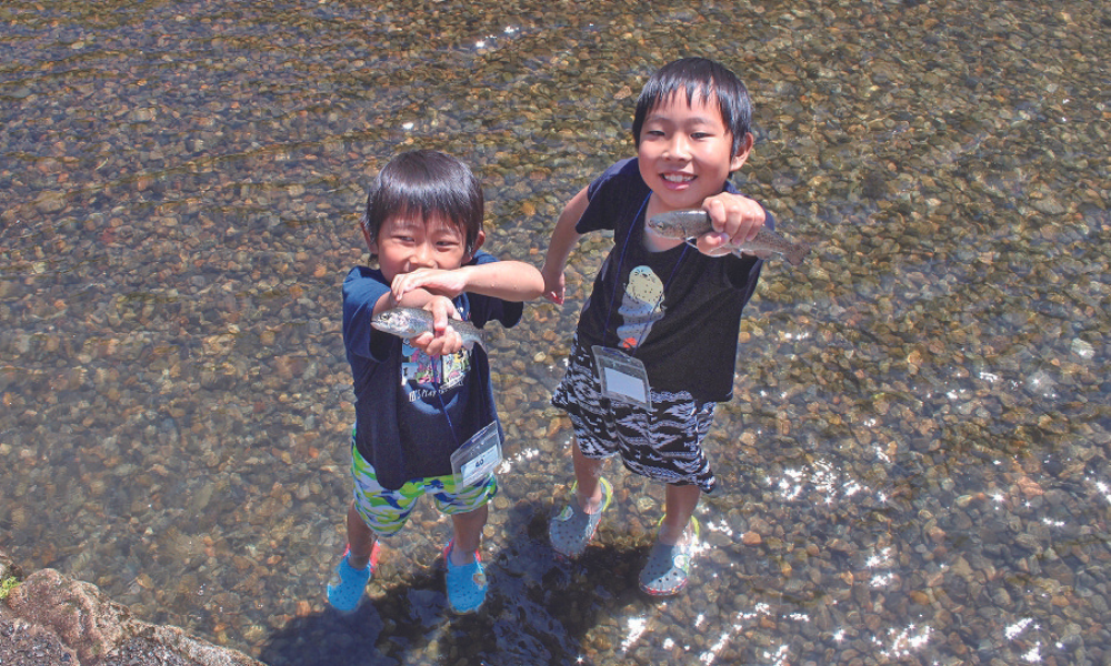当日は、じゃぶじゃぶの河原で楽しむ「マスのつかみ取り」をはじめ、