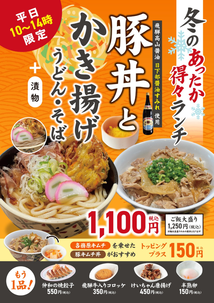 さらに、焼き餃子や飛騨牛コロッケ、各務原キムチなどのサイドメニューを追加して、自分好みに楽しむのもおすすめ。