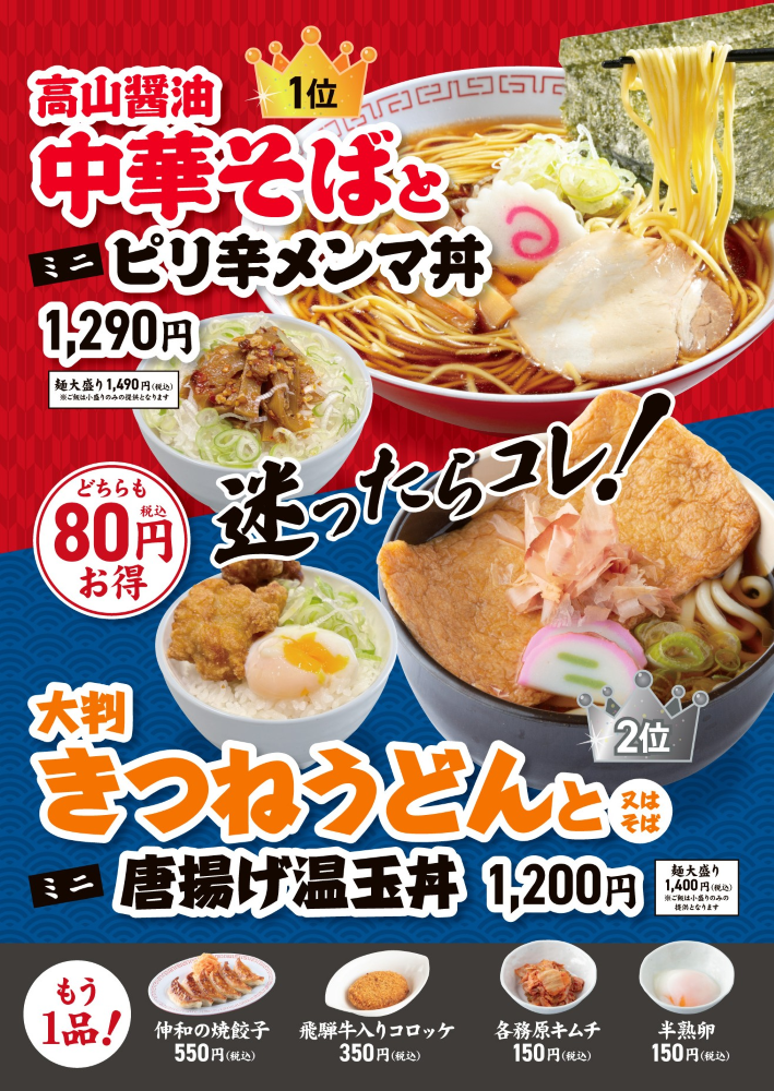 ☞大判きつねうどん/そばとミニ唐揚げ温玉丼