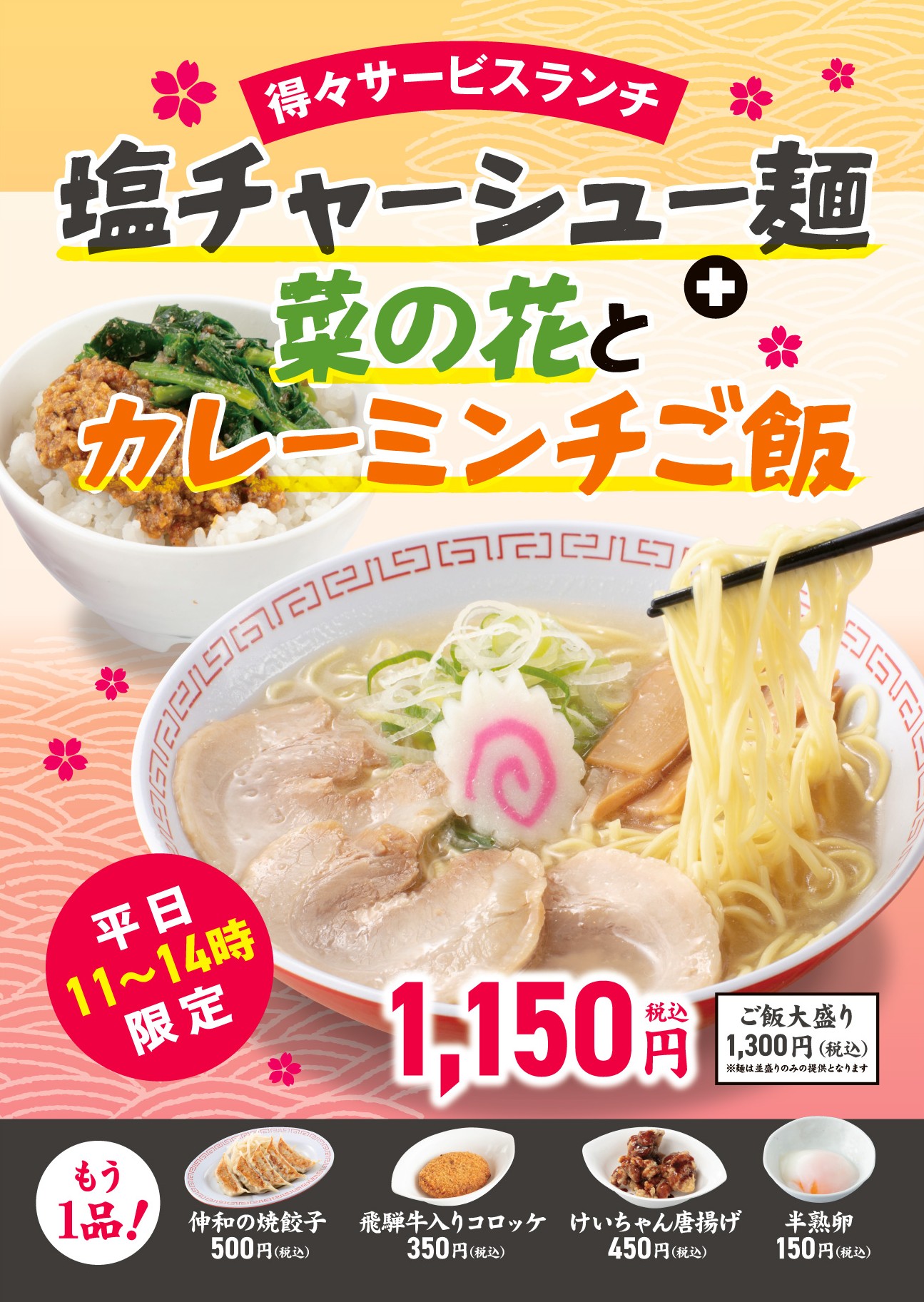 通常 1,050円/ご飯大盛り 1,250円