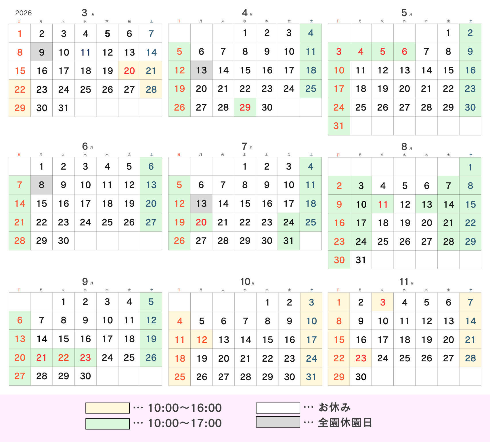 11月休業日:11/1(土)2(日)9(日)15(土)